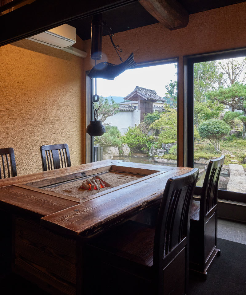 四季折々の美しい日本庭園を眺めながら、恵那産のジビエ料理を、囲炉裏で楽しむ。菊日和では、喧騒な日々から抜け出し、ゆっくりと流れる時間を感じながら、それはまるでお爺ちゃん、お婆ちゃんの家に帰ってきたような体験が出来る場所。