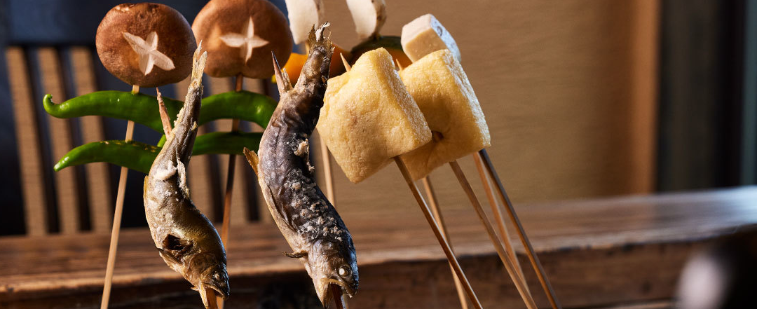菊日和の料理は、恵那産のその季節ごとの旬な食材を使っております。夏には新鮮な鮎や岩魚、秋には栗を使った料理など、その時々でお客様に楽しんで頂けるような料理を考えております。囲炉裏を囲みながらゆっくりと焼き上がっていく料理を、心置きなくご堪能ください。